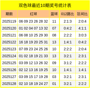 双色球第2025128期奖号:02、10、18、19、24、27 + 01,红球012路比为3:2:1,蓝球开出1路号。