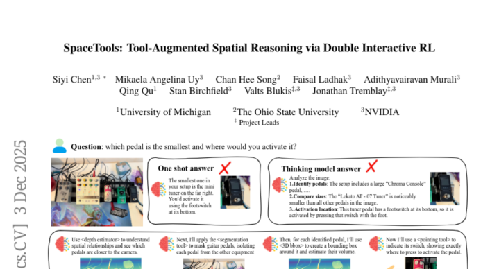 NVIDIA联合研究团队开发的SpaceTools系统就是要解决这个问题。他们的核心创新在于创造了一种叫做"双重交互强化学习"(DIRL)的训练方法,让AI学会像经验丰富的厨师一样协调使用多种"工具"。这些工具包括深度估计器(用来判断物体远近)、分割工具(用来识别特定物体)、3D边界框工具(用来测量物体大小)等等,就像厨师工具箱里的各种专业厨具。